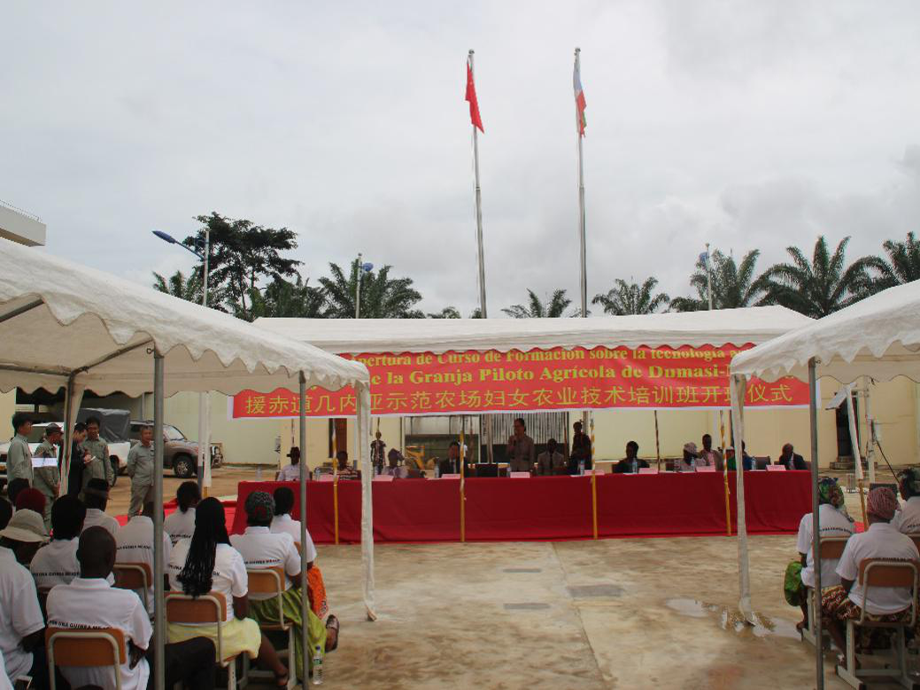 2019年10月28日,援赤道幾內(nèi)亞示范農(nóng)場(chǎng)婦女農(nóng)業(yè)技術(shù)培訓(xùn)班舉行開班儀式,中國(guó)駐赤道幾內(nèi)亞大使亓玫、經(jīng)商處參贊蘇建國(guó)、婦女部駐大陸代表恩桑、赤道幾內(nèi)亞農(nóng)林部駐大陸代表米查、中央政府駐涅方市代表安貝內(nèi)等70余人出席開班儀式。